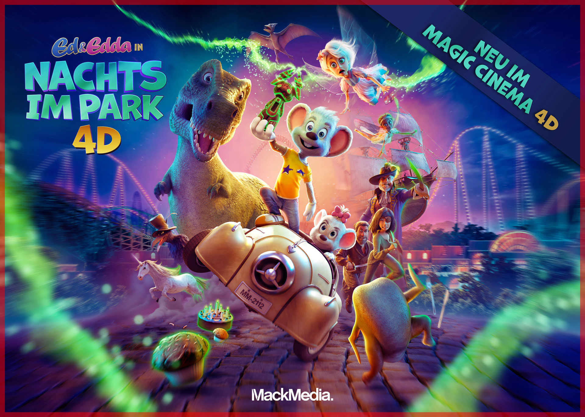 Mit ihrem ersten großen Kinoabenteuer, dem Animationsfilm GRAND PRIX OF EUROPE, treten Ed & Edda 2025 ins Rampenlicht der internationalen Filmwelt. Die Koproduktion von Michael Mack und MACK Magic mit Warner Bros. Film Productions Germany wird als spannendes Rennabenteuer quer durch Europa erzählt, dessen Markenwelt mit einer eigenen Familienattraktion im Europa-Park, einem Videospiel und zahlreichen Lizenzprodukten im Handel erweitert wird.