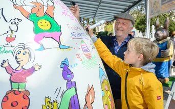 Zahlreiche Aktionen an Ostern: XXL-Ostereier bemalen mit Peter Gaymann, Ostermontagsgottesdienst und vieles mehr