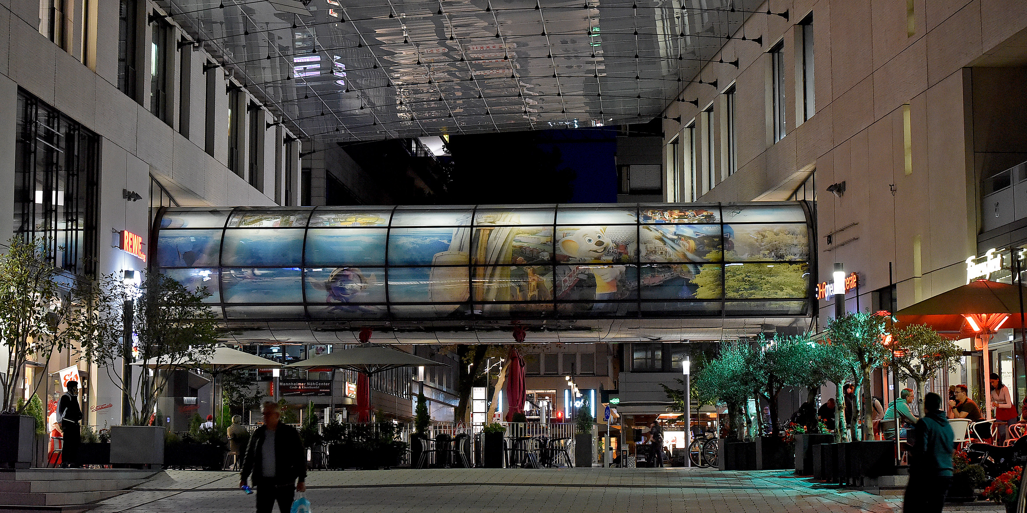 Das besondere Feeling aus dem Europa-Park Erlebnis-Resort auch 150 Kilometer nördlich von Rust spürbar zu machen, dieser Herausforderung stellte sich das kreative Team von MACK Media mit Erfolg. Zusammen mit der Neueröffnung von YULLBE GO im Stadtquartier Q 6 Q 7 in der Mannheimer Innenstadt erhielt auch die gläserne Brücke zwischen den beiden Hälften des Quartiers einen brandneuen Look. Für das außergewöhnliche Projekt wurde MACK Media nun beim German Design Award 2023 mit der „Special Mention“ ausgezeichnet. Die Kreativagentur des Europa-Park überzeugte die internationale Jury in der Kategorie „Excellent Communications Design - Integrated Campaigns and Advertising“. Darüber hinaus ist das immersive Branding der Skywalk-Brücke auch für den Publikumspreis des German Design Award nominiert, für den die Abstimmung noch bis zum 27. Januar 2023 läuft. Seit seiner Premiere 2012 hat der German Design Award stark an Bedeutung gewonnen, rund 4.500 Einreichungen aus mehr als 60 Ländern gingen in diesem Jahr ein. Auf Initiative von Michael Mack wurde auch das beliebte Jahreszeitenkonzept aus Deutschlands größtem Freizeitpark nach Mannheim gebracht. Derzeit erstrahlt die Verbindungsbrücke in weihnachtlichem Glanz und bringt festliche Stimmung in das Stadtquartier.