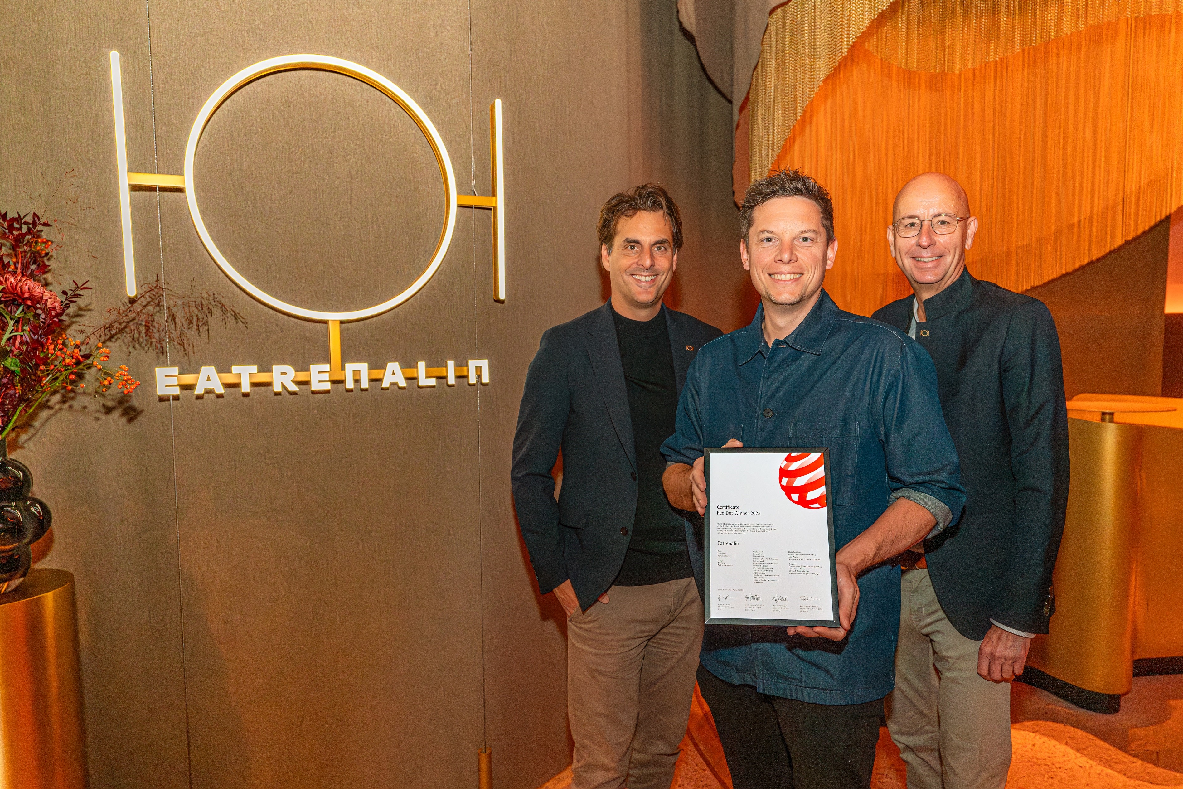 Entwickelt wurde das preisgekrönte Brand Design von der Zürcher Agentur distylerie. Der Red Dot Design Award sowie der German Design Award zählen zu den größten und renommiertesten Designwettbewerben weltweit und genießen in Fachkreisen hohes Ansehen. Die besten Marken und Kommunikationsdesignprojekte werden im Red Dot Award: Brands & Communication Design prämiert. Zu den Evaluierungskriterien der Auszeichnung zählen unter anderem die Markenidentität und -differenzierung, die Gestaltungsqualität und Innovation des Designs sowie dessen Wirkung bzw. Verständlichkeit und Emotionalität für die Zielgruppe. In diesen Aspekten hat der futuristische und immersive Charakter von Eatrenalin die Jury überzeugt.