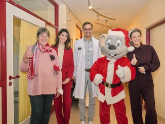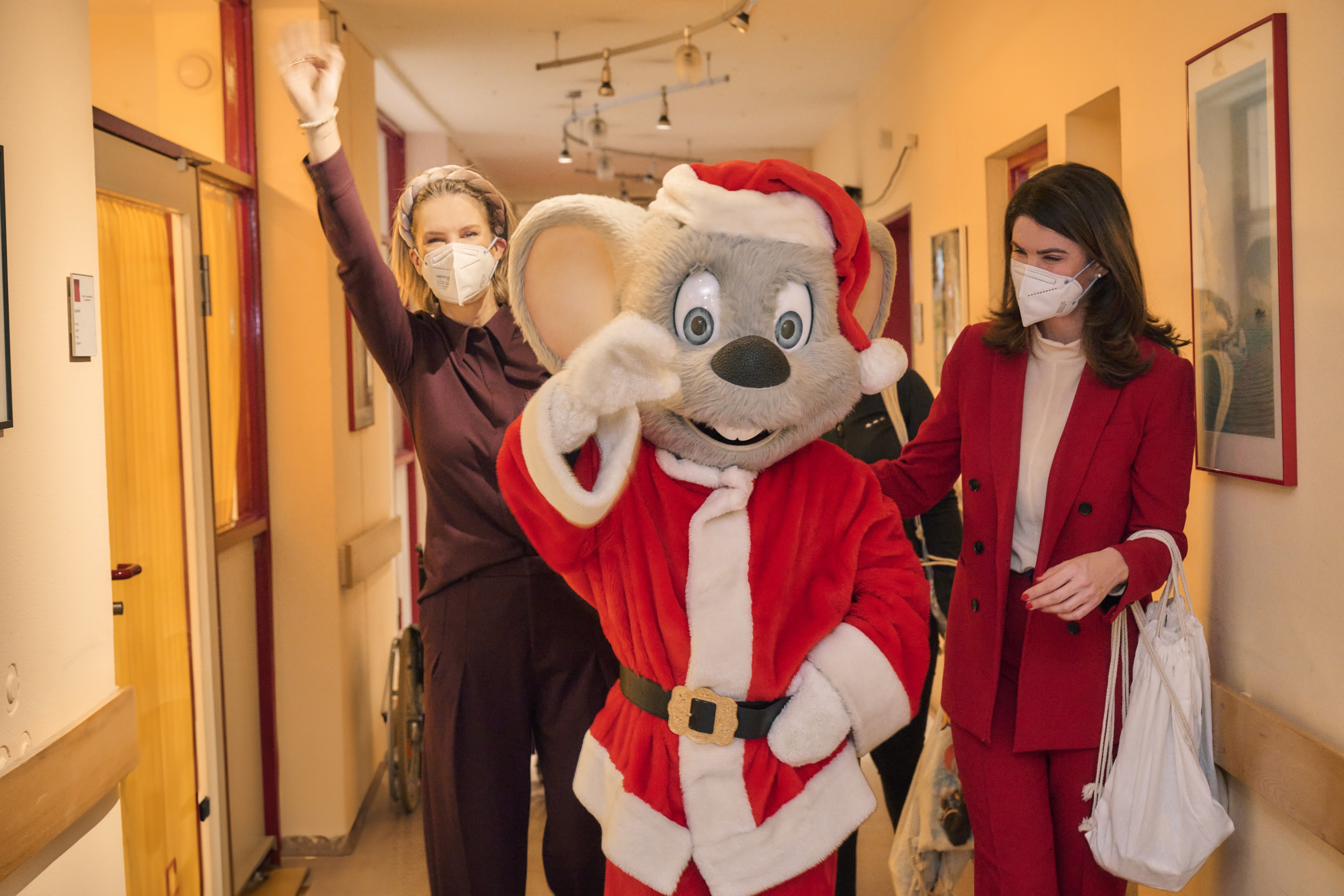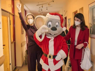 Weihnachtsüberraschung vom Europa-Park: Ed Euromaus beschenkt Patienten im Zentrum für Kinder- und Jugendmedizin in Freiburg
