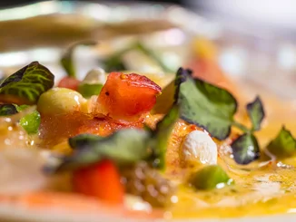 Einen Grund zu feiern gab es außerdem in doppelter Hinsicht – der 30. Besuch des Ehepaars war zeitgleich auch der Geburtstag von Susanne Ammann. Mit einem Blumenstrauß überraschten Thomas Mack, geschäftsführender Gesellschafter des Europa-Park und Eatrenalin, und Manuel Diehl, Eatrenalin Site Manager, die Jubilarin. Anschließend ließen sich die Stammgäste von den einmaligen Geschmackskompositionen verwöhnen, darunter eine Kreation aus den Tiefen des Meeres mit Königskrabbe, Erdbeere und Buddhas Hand.