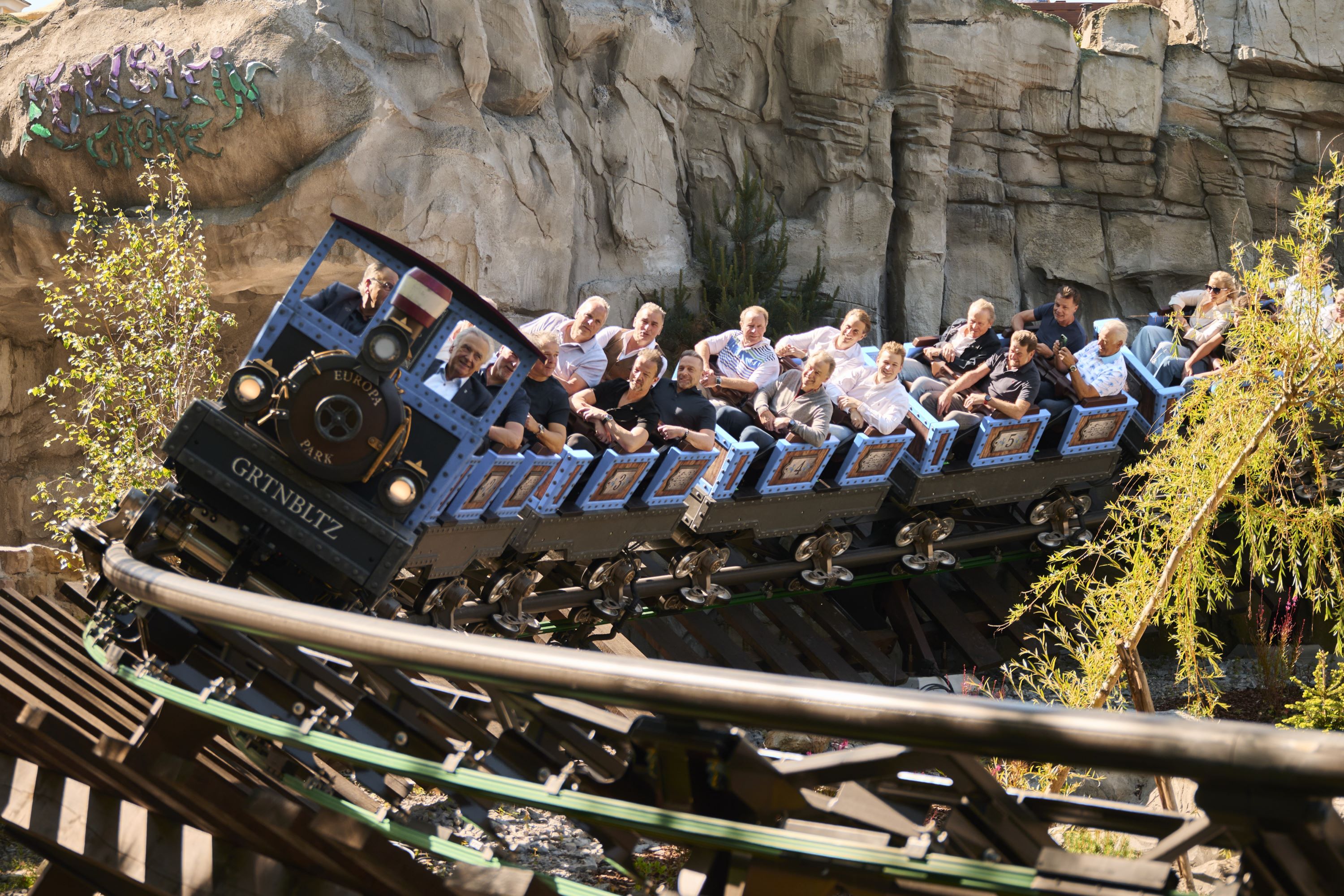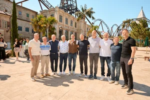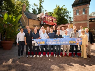 Sportlicher Besuch im Europa-Park Erlebnis-Resort: Die deutsche Fußball-Nationalmannschaft von 1996, die sich damals im Londoner Wembley-Stadion mit dem Europameistertitel krönte, traf sich kurz vor Beginn der EM 2024 in Deutschlands größtem Freizeitpark.
