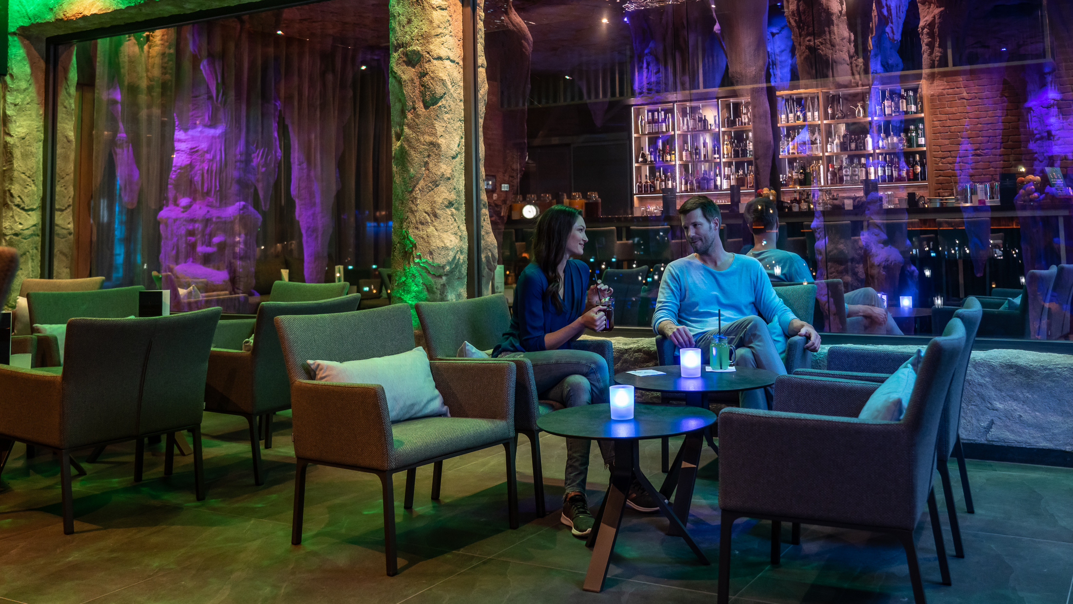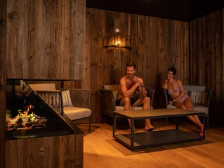 Darüber hinaus stehen den Gästen bequeme Liegemöglichkeiten auf ca. 200 Quadratmetern zur Verfügung sowie eine gemütliche Kaminlounge mit komfortablen Sesseln.