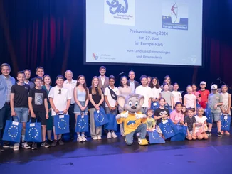 Lukas Scheub, Beauftragter der Geschäftsführung des Europa-Park: „Wir freuen uns sehr, dass wir diese Preisverleihung seit vielen Jahren zusammen mit dem Ortenaukreis und dem Landkreis Emmendingen ausrichten dürfen. Der Europäische Wettbewerb passt perfekt zum Europa-Park, gemeinsam stehen wir für ein vereintes, grenzenloses und vielfältiges Europa. Herzlichen Glückwunsch an alle Preisträgerinnen und Preisträger!“