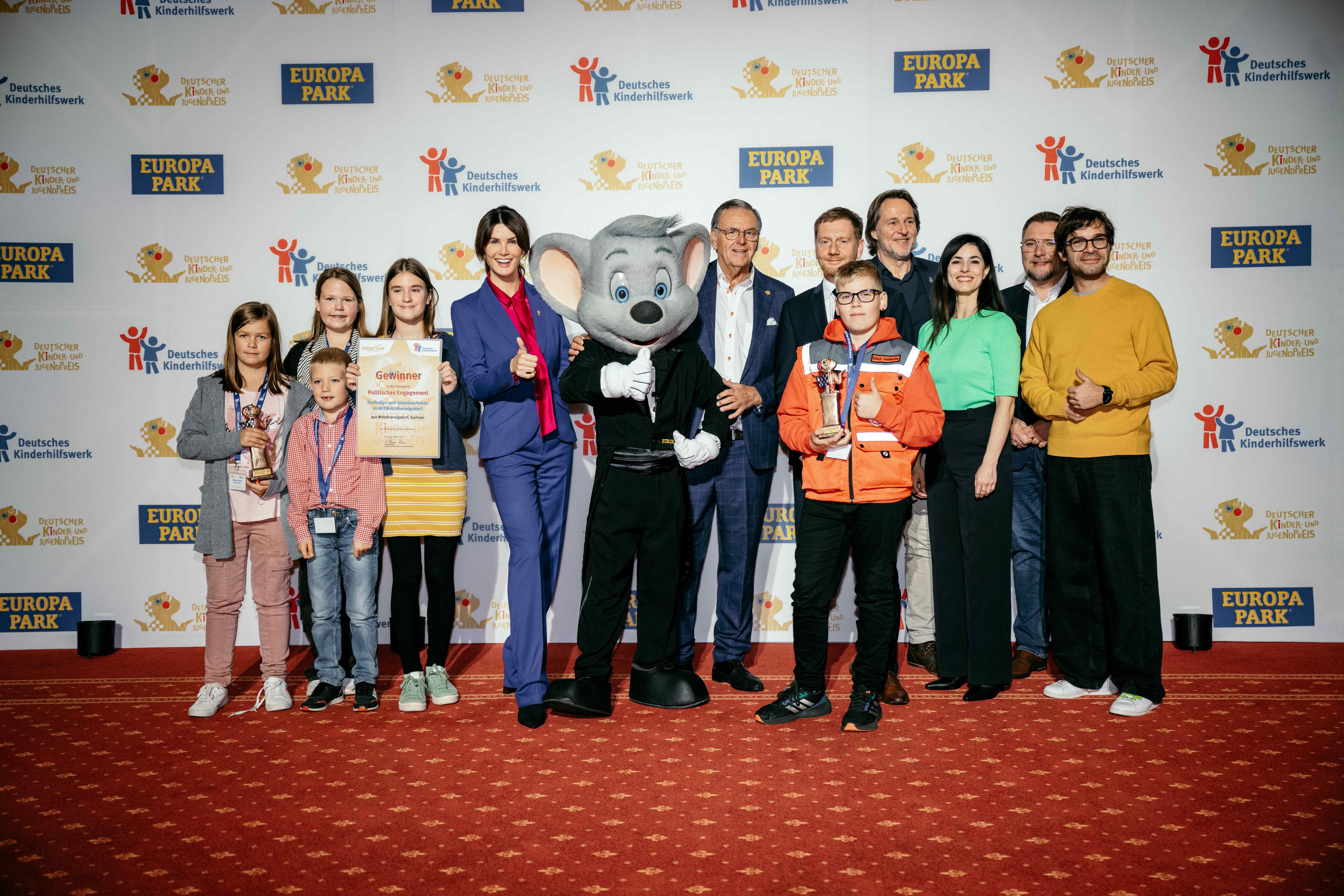 Der mit insgesamt 30.000 Euro dotierte Preis ist der höchstdotierte bundesweite Preis für Kinder- und Jugendbeteiligung. Partner ist der Europa-Park in Rust, wo der Preis heute verliehen wurde. Miriam Mack, Botschafterin des Deutschen Kinderhilfswerkes, sowie das Deutsche Kinderhilfswerk hatten das Engagement der Kinder und Jugendlichen maßgeblich unterstützt. Als Dank wurden sie zu einer feierlichen Preisverleihung mit prominenten Laudatoren und den bekannten TV-Moderatoren Ingo Dubinski und Dilek Üşük eingeladen. Der Ministerpräsident von Sachsen Michael Kretschmer war extra angereist, um die Initiative MITMACHherwigsdorf zu würdigen. Dabei hob er in einer beeindruckenden Laudatio hervor, wie wichtig es ist, dass sich bereits Kinder und Jugendliche engagieren und ihr Gemeindeleben aktiv mitgestalten. Weitere Laudatoren waren der Bundesgeschäftsführer des Deutschen Kinderhilfwerkes Holger Hofmann für PEOPLE sowie Sänger Elias Hadjeus für das Projekt Retterherzen.