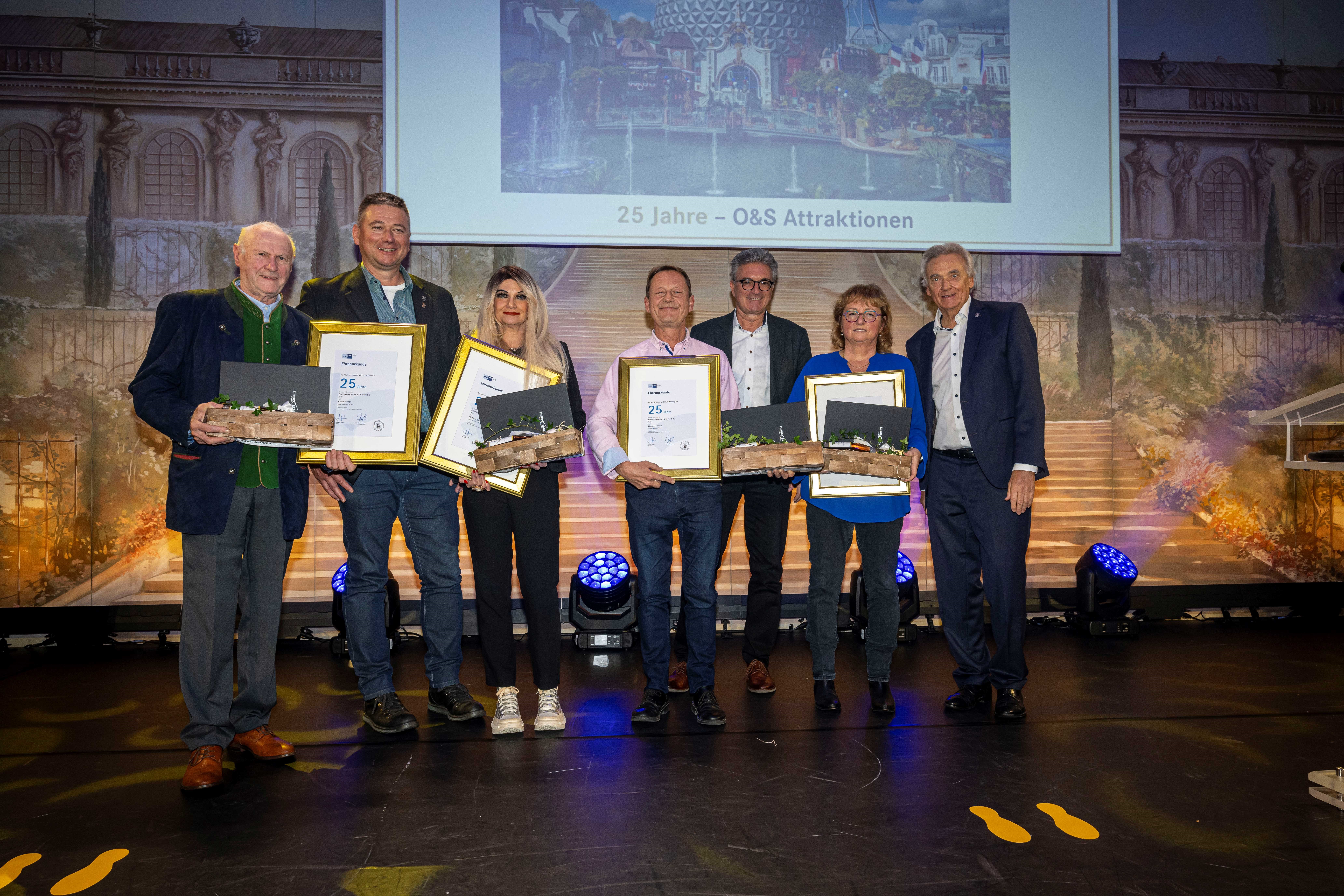 Im Rahmen der Veranstaltung, die in festlicher Atmosphäre stattfand, wurden Mitarbeiter für ihre 20-, 25-, 30-, 35-, 40- und 45-jährige Betriebszugehörigkeit ausgezeichnet. Jürgen Mack bedankte sich im Namen der Familie Mack bei den Jubilaren und betonte die zentrale Rolle, die sie für den Erfolg des Unternehmens spielen: „Der Mittelstand sichert unseren Wohlstand und ist der Wirtschaftsmotor für Deutschland. Der Europa-Park ist seit 50 Jahren Ihr treuer Partner, der Raum zur Selbstverwirklichung, spannende Tätigkeiten und einen sicheren Arbeitsplatz bietet – trotz aller Herausforderungen. Heute Abend feiern wir nicht nur Betriebsjubiläen, sondern auch die jahrzehntelange Loyalität und das herausragende Engagement für unser Familienunternehmen." Neben Ehrenurkunden erhielten die Jubilare und Ruheständler Geschenkkörbe von ihren jeweiligen Direktoren. Eine besondere Anerkennung in Form einer IHK-Urkunde wurde den Mitarbeitern mit 25 und 40 Jahren Betriebszugehörigkeit zuteil. Der festliche Abend wurde mit einem Showprogramm und einem 3-Gänge-Menü abgerundet.