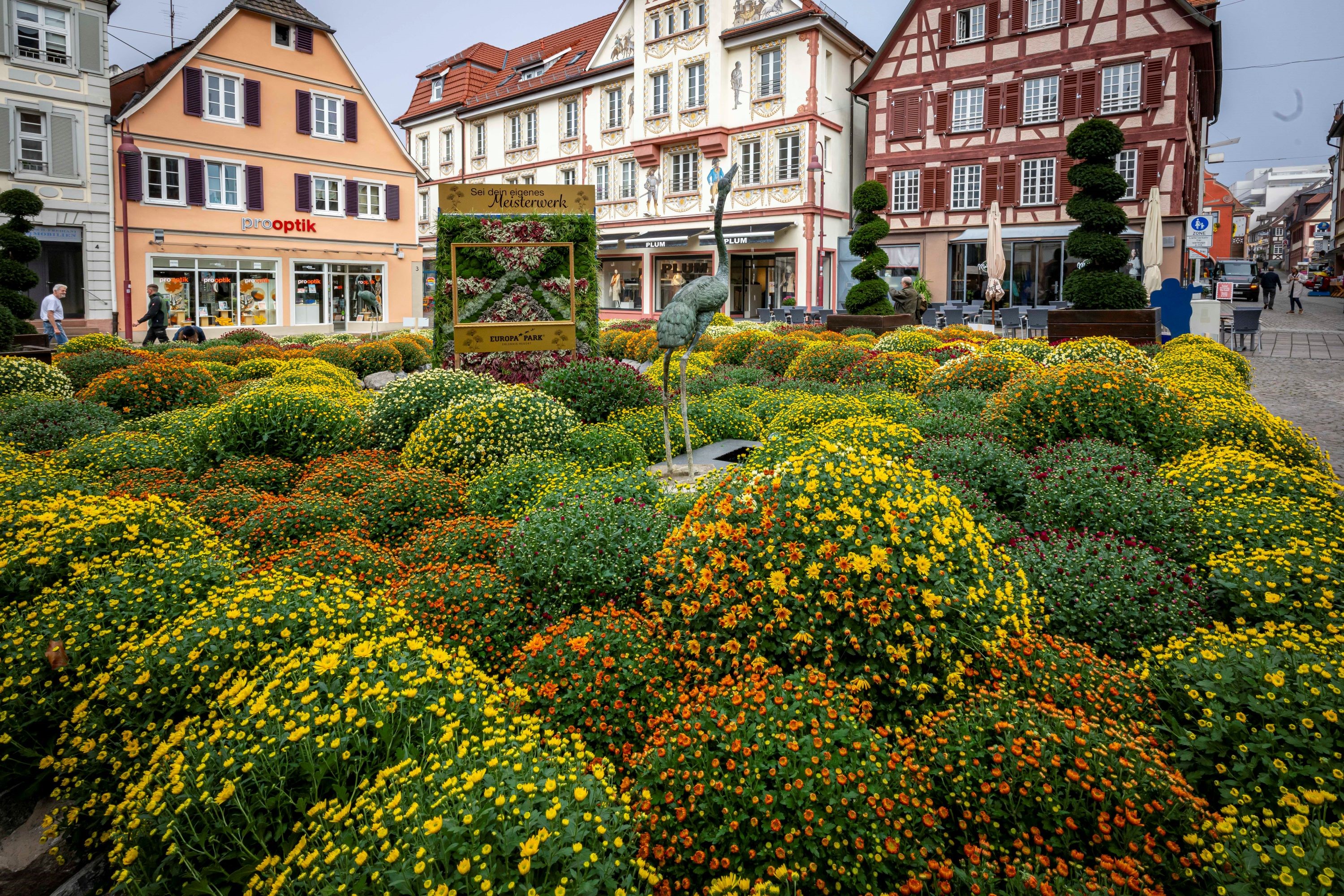 Seit über 15 Jahren unterstützt der Europa-Park das deutschlandweit einzigartige, herbstliche Blumen- und Kulturfestival Chrysanthema in Lahr mit seinem gärtnerischen Können. Auch zum 25. Jubiläum gestaltete die Europa-Park-Gärtnerei um Sebastian Elender, Betriebsleiter Garten- und Landschaftsbau, wieder ein aufwändiges Themenbeet am Lahrer Sonnenplatz. In einer logistischen Meisterleistung und rund drei Stunden Arbeit verwandelten 20 Gärtnerinnen und Gärtner aus Deutschlands größtem Freizeitpark den zentralen Platz in der Innenstadt, passend zum diesjährigen Thema „Blühende Meisterwerke“, in ein schillerndes Kunstwerk.