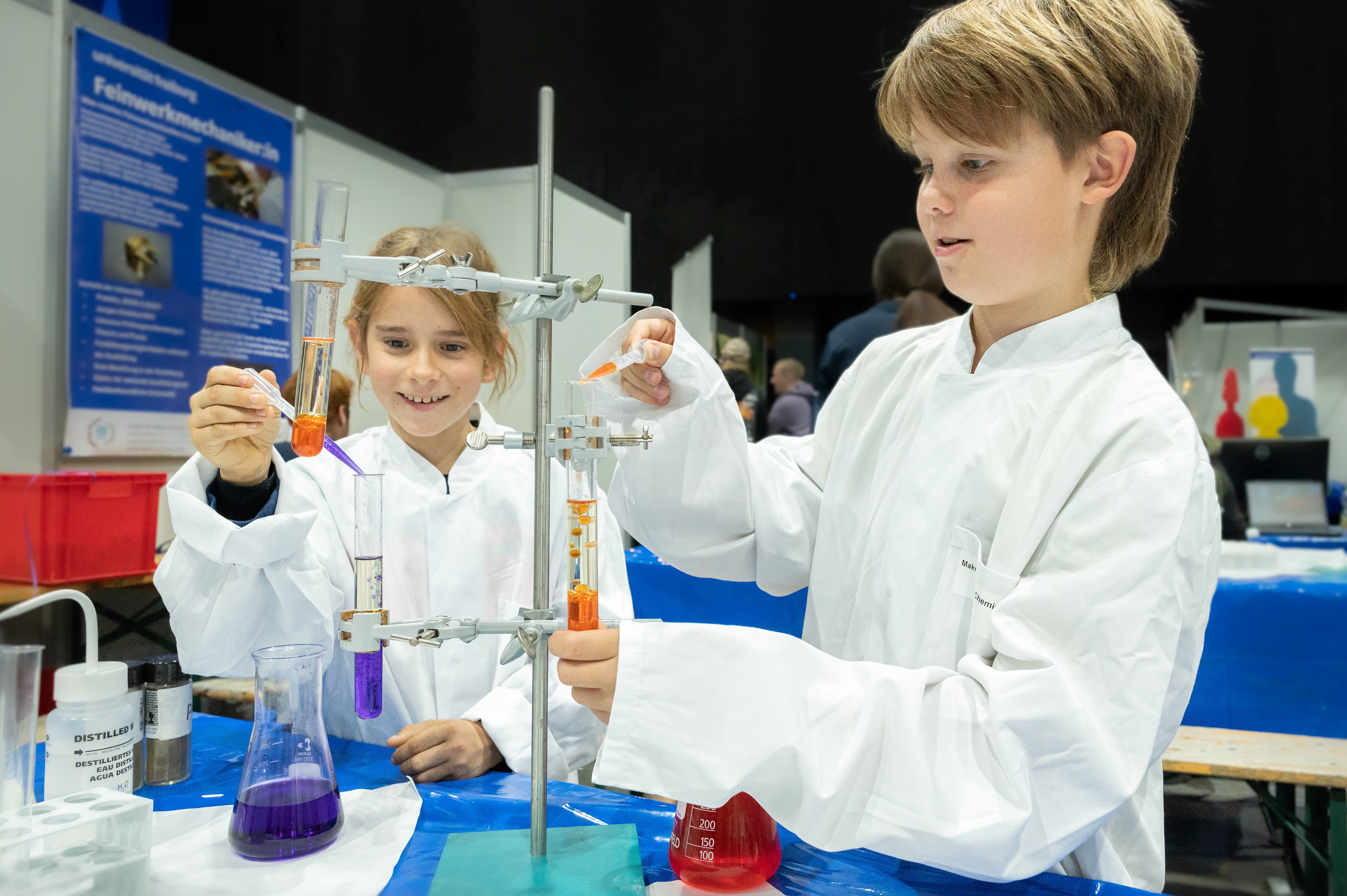 Vom 24. bis 26. Oktober verwandelte sich das Confertainment Center im Europa-Park erneut in eine Erlebniswelt für Entdecker: Die „Science Days“ luden in Kooperation mit der „Science & Technologie gGmbH“ Besucher auf eine faszinierende Reise durch die Welt der Mathematik, Informatik, Naturwissenschaften und Technik ein. Das abwechslungsreiche Programm mit Workshops, Mitmachaktionen und beeindruckenden Showeinlagen, von über 85 Aussteller begeisterten die Besucher der Science Days im Europa-Park. Tausende junge Forscher erlebten Wissenschaft und Technik hautnah – von kniffligen Rätseln über virtuelle Realitäten bis hin zu handwerklichen Projekten. Besonders beliebt war das Geschicklichkeitsspiel „heißer Draht“, bei dem sie erste Erfahrungen in Techniken wie Stanzen, Biegen und Löten sammeln konnten und so spannende Einblicke in Berufe der Metall- und Elektroindustrie erhielten.
