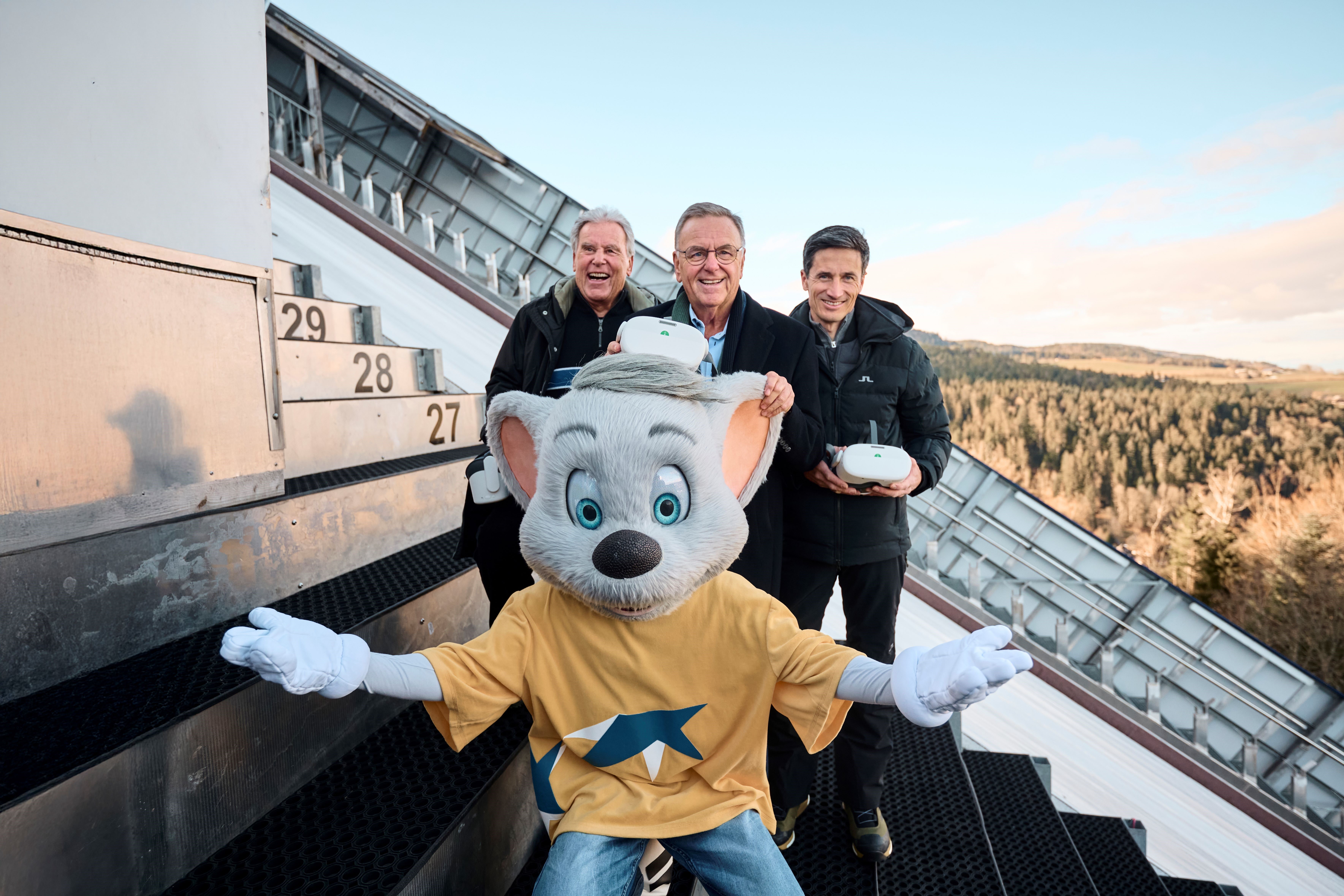 Ausnahmesportler, Olympiasieger und Weltmeister Georg Thoma, dem es als erstem Mitteleuropäer gelang, die Goldmedaille bei den VIII. Olympischen Winterspielen in Squaw Valley /USA zu gewinnen, sowie der erfolgreiche Skispringer Martin Schmitt, der mehrfacher Weltcup-, Weltmeister- und Olympiasieger ist, waren bei der Vorstellung der neuen VR- Experience dabei und zeigten sich begeistert von der detailgetreuen Umsetzung des virtuellen Skisprungs. Modernste Technik bietet den Besuchern dabei ein unvergleichlich realistisch und spektakuläres Erlebnis. Bereits im September dieses Jahres wurden die beeindruckenden Sprünge mit einer Kamera, die auf dem Helm eines Skispringers montiert wurde, aufgenommen. Dabei sind Aufnahmen in extrem hochwertiger Qualität entstanden, die anschließend umfassend gesichtet, geschnitten und bearbeitet wurden. Die finale VR-Anwendung entstand in Unity, einer Entwicklungsumgebung, die besonders für interaktive 3D- und VR-Erlebnisse bekannt ist. Entwickelt von VR Coaster, erlaubt die Anwendung die Darstellung der Videos auf der VR-Brille PICO G3 – einer leistungsstarken autarken VR-Brille, die speziell für immersive Anwendungen konzipiert wurde.