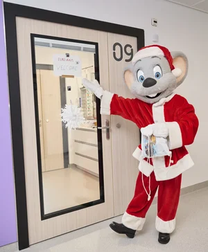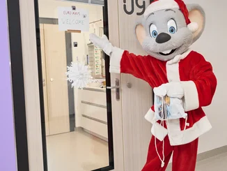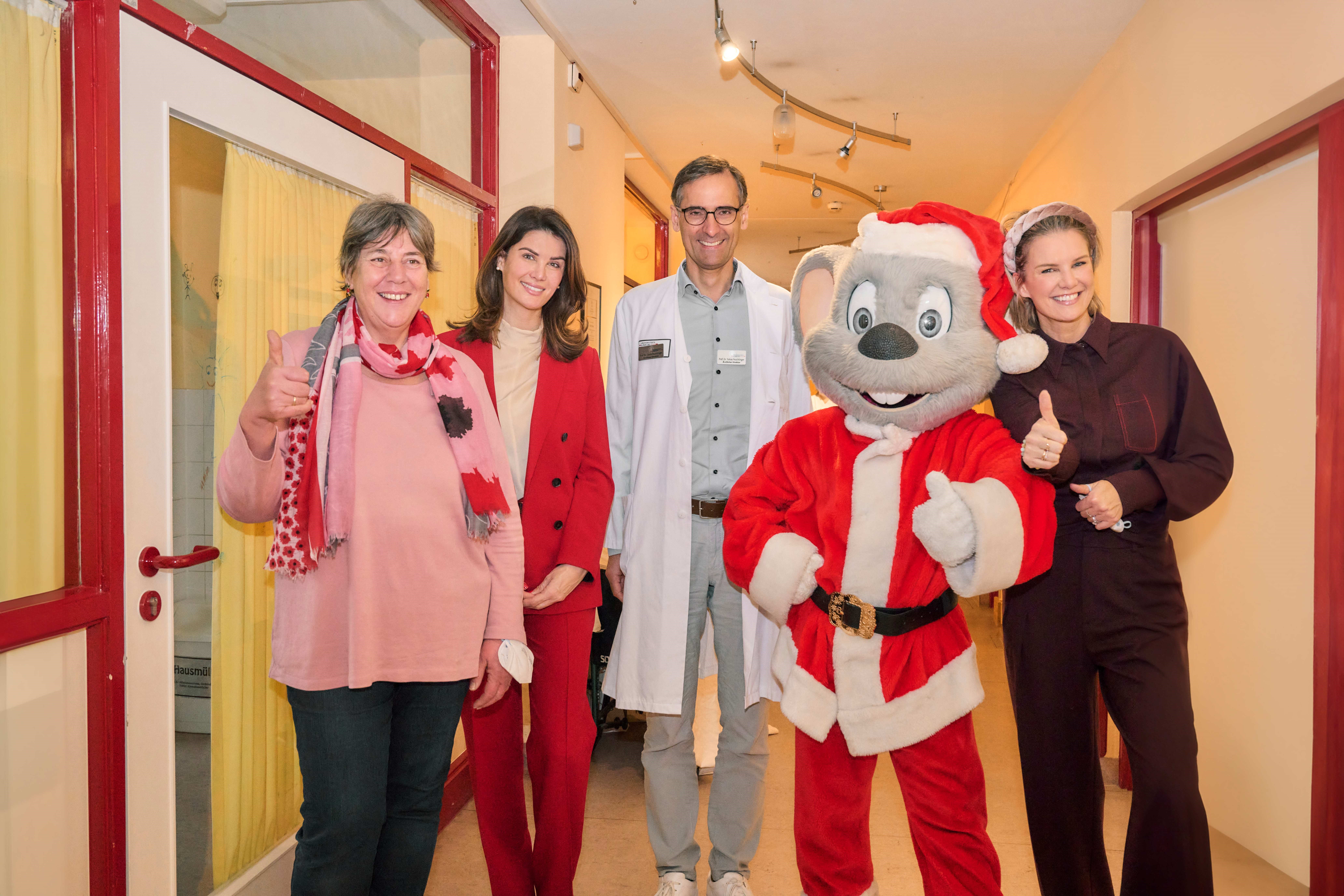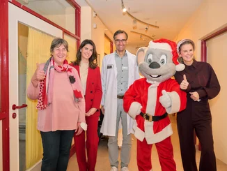 Ed Euromaus überraschte die Kinder und Jugendlichen in den neuen Räumlichkeiten der Klinik für Pädiatrische Hämatologie und Onkologie des Universitätsklinikums Freiburg mit zahlreichen Geschenken. Für Miriam Mack, Botschafterin des Deutschen Kinderhilfswerkes, ist die Aktion bereits seit vielen Jahren eine Herzensangelegenheit: „Ich hoffe, dass ich damit etwas zum Heilungsprozess der jungen Patienten beitragen kann. Es ist für mich jedes Jahr unglaublich emotional zu sehen, wie sich die Kinder und Jugendlichen über den Besuch und die Geschenke freuen. Für die großartige und unverzichtbare Arbeit von Dr. Tobias Feuchtinger und seinem Team bin ich sehr dankbar und ich möchte mit dem Besuch auch ihren unermüdlichen Einsatz würdigen.“