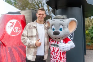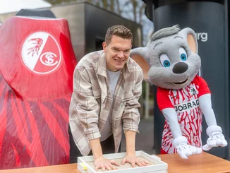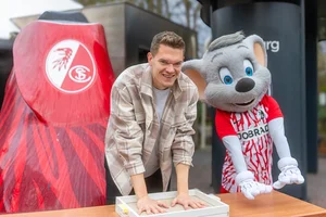 Für seine Platzierung im „100er-Klub“ der Bundesliga-Rekordspieler wurde der SC Freiburg-Profi mit einem Händeabdruck in der „Arena of Football“ geehrt.