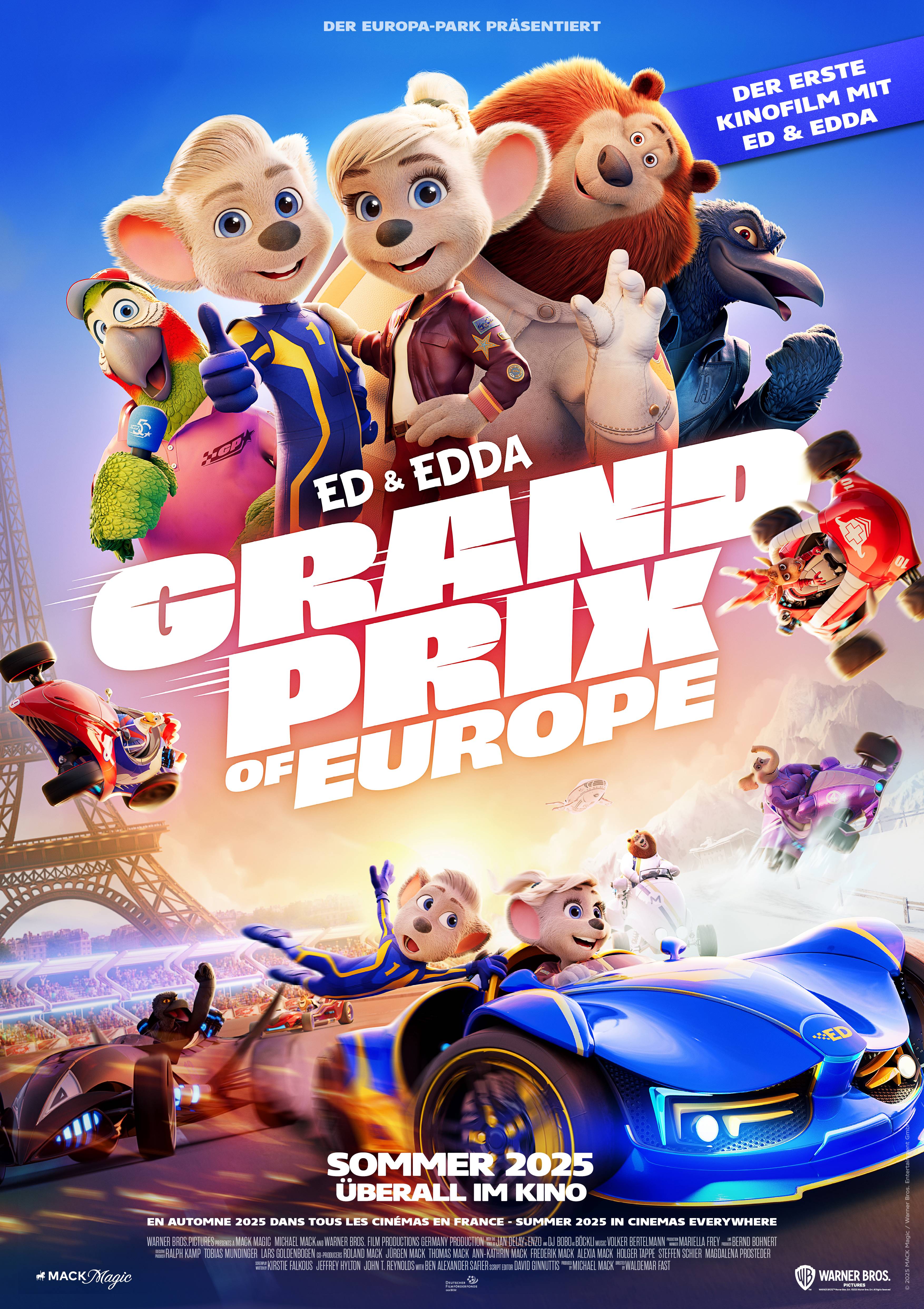 Start frei für Ed, Edda und ihre Freunde: Der offizielle Trailer zum Kinofilm GRAND PRIX OF EUROPE ist da – und bringt die Vorfreude auf den Kinostart am 24. Juli auf Hochtouren! Er gibt Einblicke in die rasante Geschichte von Ed & Edda, den bekannten und beliebten Maskottchen des Europa-Park. Der liebevoll animierte Abenteuerfilm präsentiert Ed, Edda und ihre Freunde zum ersten Mal auf der großen Leinwand und verspricht jede Menge bezaubernde Charaktere, humorvolle Action und ganz viel Rennspaß für die ganze Familie.