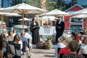 Zur Freude der Gäste war zudem das Maskottchen der „Kirche im Europa-Park“ Joy am Gottesdienst beteiligt. Sie entdeckte eine Zeitreisende in einer Tonne und befreite sie. Die Zeitreisende, gespielt von Medea Frey, entpuppte sich als Jüngerin Jesu und erzählte von großen Abenteuern.