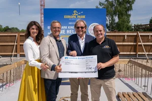 Gestern wurde, begleitet von einem Auftritt der Kinder der TALENT ACADEMY, feierlich der Grundstein für das Kinderhaus gelegt, das im Frühjahr 2026 eröffnen soll. In Kooperation mit der „Stiftung RTL - Wir helfen Kindern e.V.“ und unter der Schirmherrschaft von Musiker DJ BoBo entstehen in der Silver Lake City des Europa-Park in den kommenden Monaten fünf barrierefreie Apartments für jeweils vier Personen. Die Unterkunft wird in ein naturnahes Freizeitprogramm eingebettet und fachlich begleitet von der Syltklinik sowie der Deutschen Kinderkrebsstiftung. Ehrenamtlich engagierte, pensionierte Europa-Park Mitarbeitende übernehmen die Betreuung der Familien vor Ort.