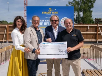 Im Rahmen der Grundsteinlegung zum „Europa-Park Kinderhaus Kleine Helden“ hat der Präsident des VDV Wieland Schwarzkopf eine großzügige Summe in Höhe von 5.000 € an Europa-Park Inhaber Roland Mack und die Botschafterin des Kinderhauses Miriam Mack übergeben. Die Einrichtung ermöglicht Kindern, die nach einer Krebserkrankung wieder genesen sind, und ihren Familien einen kostenlosen, erholsamen Aufenthalt im Europa-Park und der Wasserwelt Rulantica. Mit der Spendensumme möchte der VDV zu einem unvergesslichen Erlebnis beitragen.