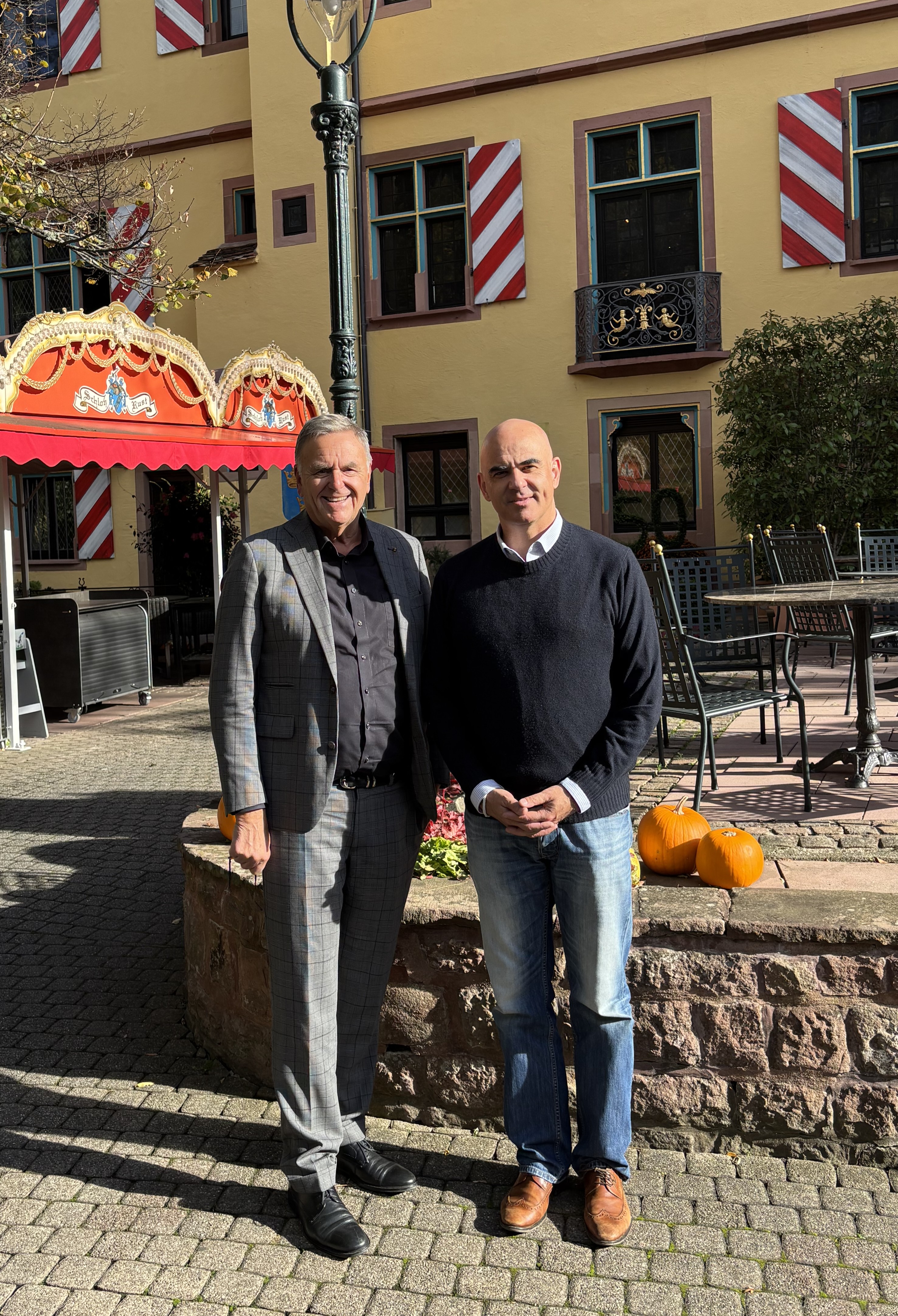 Alain Berset, Generalsekretär des Europarats und ehemalige Schweizer Bundespräsident, besuchte Deutschlands größten Freizeitpark und nutzte die Gelegenheit zu einem persönlichen Austausch mit Roland Mack, Gründer und Inhaber des Europa-Park. Dabei tauschten sie sich über aktuelle europäische Themen und die Bedeutung gemeinsamer Werte in Europa aus. Im Mittelpunkt des Gesprächs standen die Förderung des europäischen Gedankens, der interkulturelle Austausch sowie die Rolle von Bildung und Begegnung in einer zunehmend vernetzten Welt. Roland Mack und Alain Berset verbindet die Überzeugung, dass Europa von Dialog, Vielfalt und gegenseitigem Verständnis lebt – Werte, die auch im Europa-Park täglich erlebbar sind. Bereits in der Vergangenheit gab es gemeinsame Projekte zwischen dem Europa-Park und dem Europarat, unter anderem das Europäische Jugendcamp mit Jugendlichen aus Konfliktregionen wie Israel und Palästina, das das friedvolle Miteinander gestärkt hat.