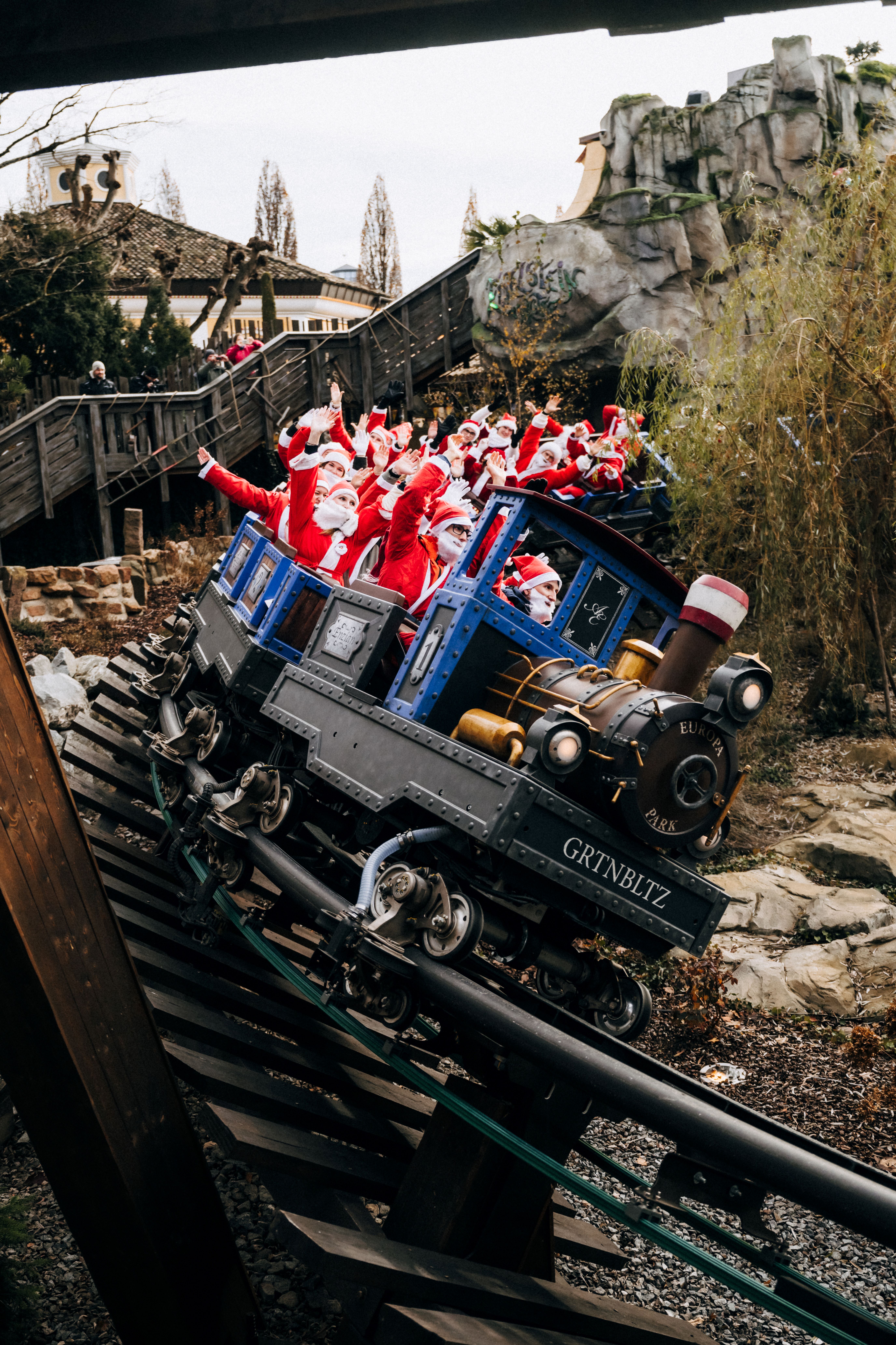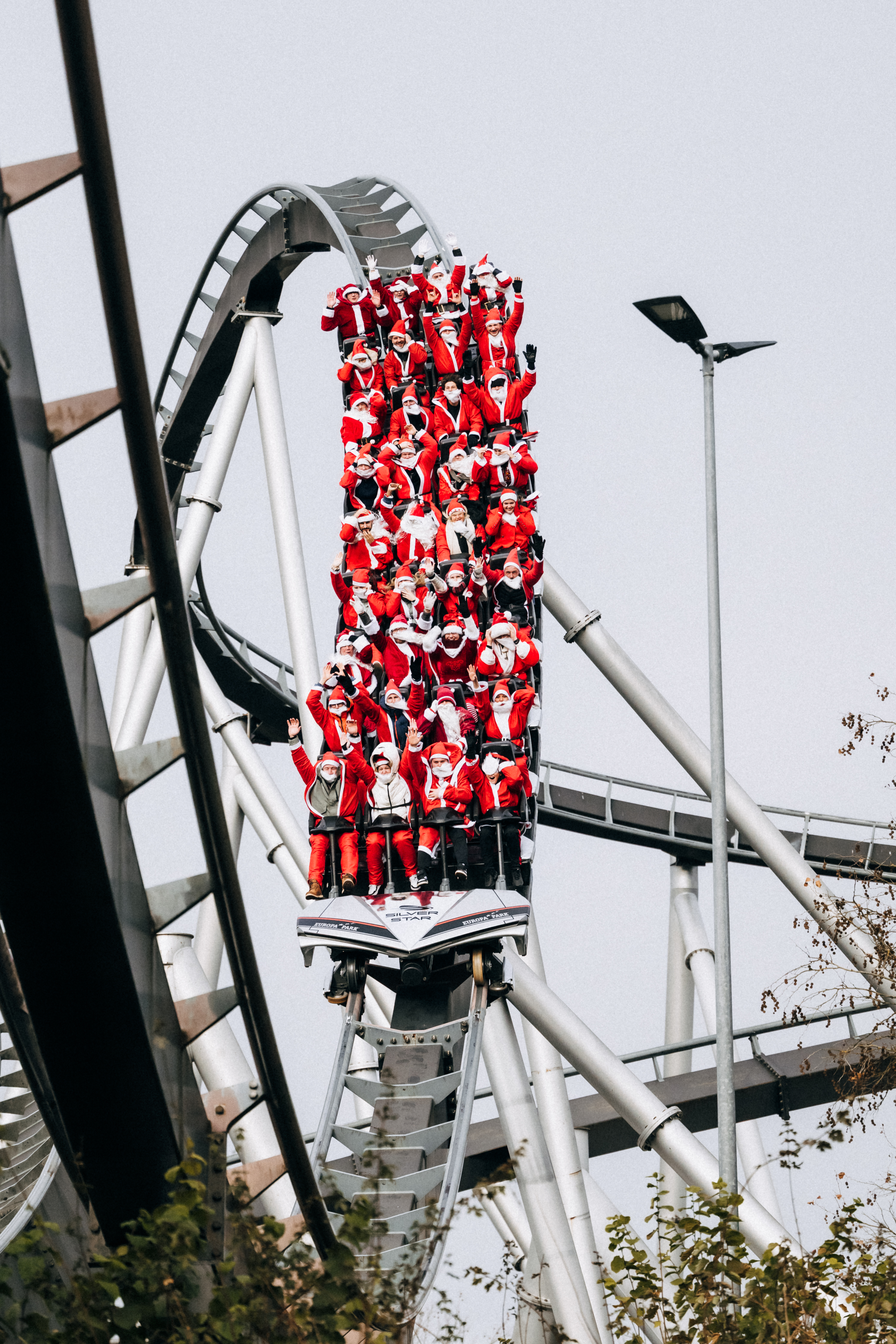 Im Anschluss erlebten die Weihnachtsmänner unter anderem eine Fahrt mit der Katapultachterbahn „blue fire Megacoaster“ durch die schroffen Felslandschaften Islands, reisten mit der Stahlachterbahn „Silver Star“ durch Frankreich, durften beim Familienklassiker Alpenexpress „Enzian“ an tosenden Wasserfällen vorbei durch Österreich sausen und stimmten den Europa-Park auf die Wintersaison ein.