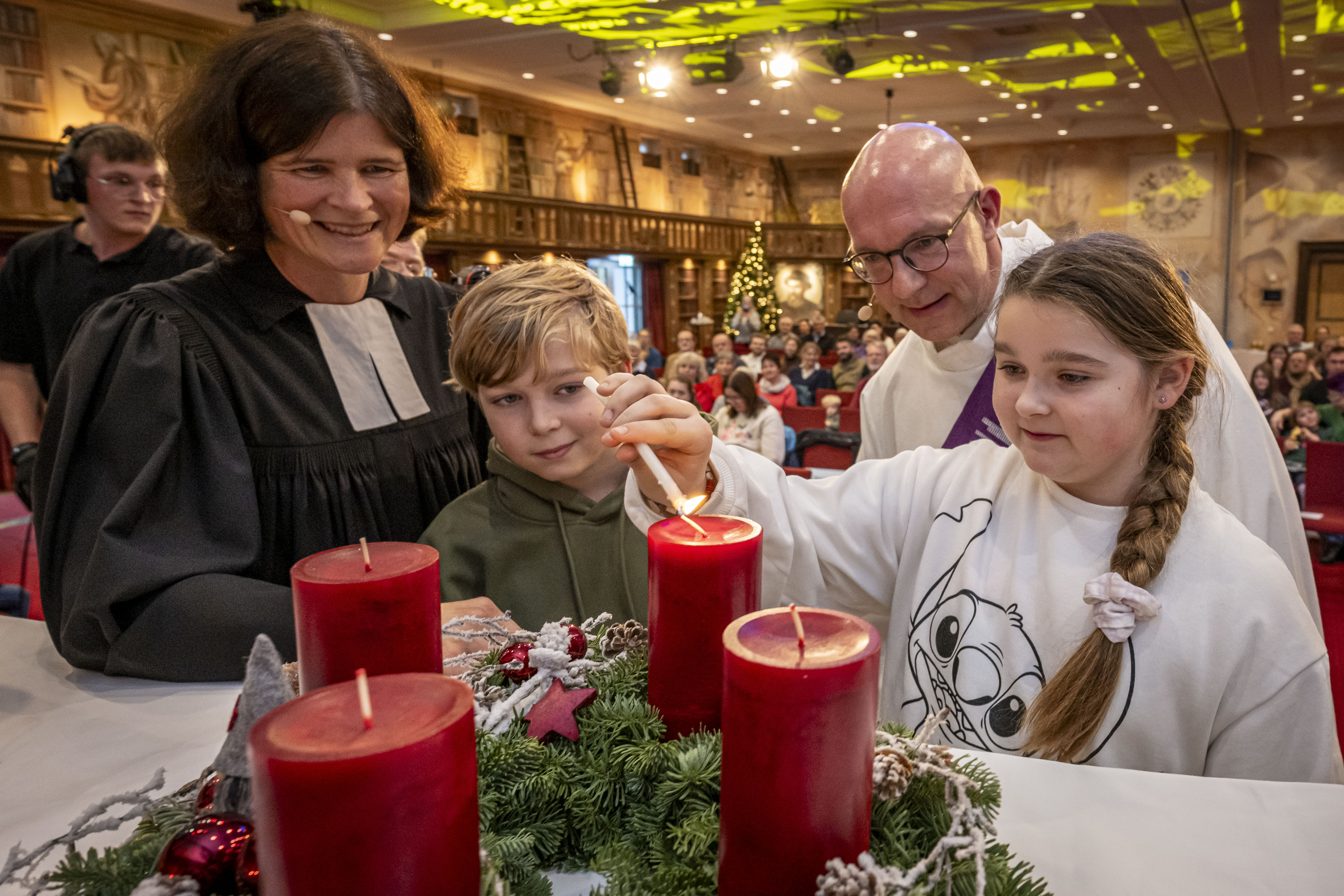 Gestaltet wurde der Gottesdienst von den Seelsorgern der „Kirche im Europa-Park“, Andrea Ziegler und Thomas Schneeberger, die mit einfühlsamen Worten und vorweihnachtlichen Impulsen einen ganz besonderen atmosphärischen Rahmen schufen. Für die musikalische Begleitung sorgte der Kammerchor der Katholischen Seelsorgeeinheit Achern unter der Leitung des Kantors und Kirchenmusikers Frank Hodapp. Im Mittelpunkt der Feier stand auch das gemeinsame Entzünden der ersten Kerze des Adventskranzes. Der Adventsgottesdienst bildete damit einen stimmungsvollen Auftakt zu einer Zeit voller Vorfreude und Besinnlichkeit im Europa-Park