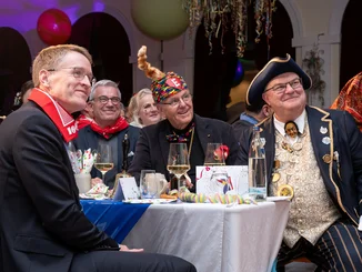 „Narri – Narro!“ im Europa-Park in Rust: Rund zweihundert Narren der Vereinigung Schwäbisch-Alemannischer Narrenzünfte (VSAN) haben im 4-Sterne Hotel „Colosseo" den diesjährigen Träger der Goldenen Narrenschelle, Manuel Hagel, in Empfang genommen. Der CDU-Landeschef wurde vom Präsidenten der VSAN, Roland Haag, und dem Europa-Park Inhaber Roland Mack begrüßt. Die Laudatio hielt als Überraschungsgast Daniel Günther, Schleswig-Holsteins Ministerpräsident. Günther stellte in seiner Rede über den Parteifreund fest: „Manuel Hagel, das wär’ für Ba-Wü wohl der rechte Mann, in diesem Land, mit diesem Ton, der vieles tragen kann.“
