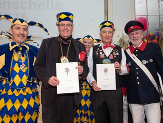 Der Schellenträger war an dem Abend nicht der einzige, dessen Engagement für die Fastnacht von den Narren ausgezeichnet wurde: Eine weitere Ehrung gab es für Roland und Jürgen Mack. Ihre Heimat-Narrenzunft aus Waldkirch machte die beiden Europa-Park Inhaber zu Ehrennarren. Anlässlich des 50-jährigen Bestehens des Europa-Park wollten sie so ihre tiefe Verbundenheit und Freundschaft zur Familie Mack zum Ausdruck bringen.
