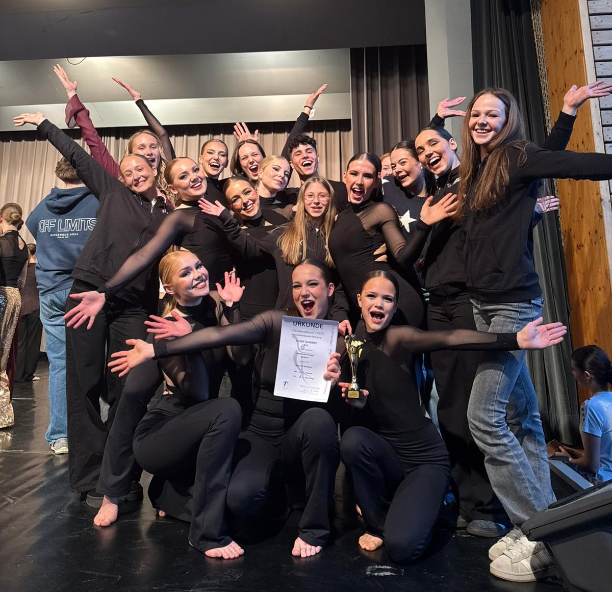 Am vergangenen Wochenende konnte sich die Performance Crew unter der Leitung von Franziska Wolf bei renommierten Wettbewerben gleich zwei Mal den 1. Platz sichern: Am Samstag, 21. Februar qualifizierten sich die Tänzer mit ihrer Nummer „Heart of Darkness“ beim Wettbewerb „Dance Unit Qualifier Regio Süd“ in Ulm für die „World Finals“ im Mai in Innsbruck, Österreich. Sie erhielten 102 von 120 möglichen Punkten und konnten den Wettbewerb somit mit deutlichem Abstand für sich entscheiden.