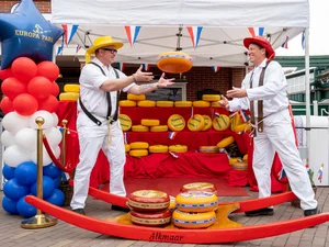 Authentisches Brauchtum vermitteln zwei Käseträger aus Alkmaar, die das traditionsreiche Käsetragen wie auf dem berühmten Markt ihrer Heimatstadt demonstrieren. Eine Künstlerin zeigt an der Drehscheibe die Kunst des Töpferns und verziert ihre Werke im traditionellen Delfter-Blau-Stil. Direkt daneben begeistert ein Klompenschnitzer mit seinem Geschick und einer Ausstellung kunstvoll gearbeiteter Holzschuhe. Für junge Gäste zwischen fünf und zwölf Jahren bietet eine kreative Bastel-Aktion neben den Mini-Scootern die Möglichkeit, kleine Keramikfliesen farbenfroh zu bemalen und somit ein Stück Holland mit nach Hause zu nehmen.