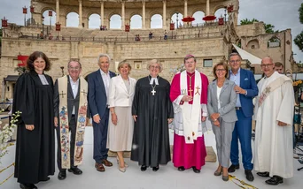 Knapp 500 Menschen versammelten sich am 5. Juni auf der Piazza des Hotels „Colosseo“, um gemeinsam den Open-Air Jubiläumsgottesdienst zum 50. Jubiläum des Europa-Park zu feiern. Mit persönlichen Worten eröffnete Roland Mack, Inhaber des Europa-Park, die Feierlichkeiten: „Die ‚Kirche im Europa-Park‘ ist für mich ein Vorzeigeprojekt gelebter Ökumene und ein starkes Zeichen für eine mutige, menschennahe Kirche. Genau das haben wir beim Jubiläumsgottesdienst im Europa-Park erlebt. Es braucht heute eine Kirche, die auch zu den Menschen kommt.“