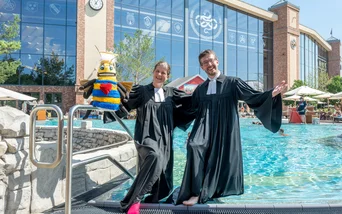 Zum ersten Mal wurden am Sonntag neun Kinder aus der Region in der Wasserwelt Rulantica im Rahmen eines ganz besonderen Gottesdienstes getauft. Die Feier, gestaltet von der Seelsorgerin der „Kirche im Europa-Park“ Andrea Ziegler, Pfarrer Jörg Herbert und Diakonin Medea Frey, fand am Rande des Außenpools „Frigg Tempel“ statt und wurde vom Posaunenchor Kippenheim unter der Leitung von Andreas Beinroth musikalisch umrahmt.