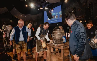 Mit einem kräftigen Schlag hat Thomas Mack, geschäftsführender Gesellschafter Europa-Park, am 19. September das erste Fass Hofbräu Oktoberfestbier in der Europa-Park Arena angestochen und damit den offiziellen Startschuss für das Oktoberfest im Europa-Park gegeben. Moderiert von Schlager-Ikone Stefan Mross und begleitet von zünftiger Musik und mit den traditionellen Worten „O’zapft is!“ wurde die diesjährige Fest-Saison feierlich eröffnet.