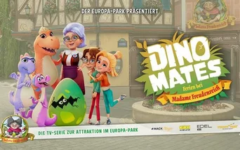 Seit 2018 begeistern Madame Freudenreich und ihre Dinos die Besucher des Europa-Park in der Familienattraktion „Madame Freudenreich Curiosités“ und als Bilderbuchreihe. Die Serie „DINO MATES – Ferien bei Madame Freudenreich“ bringt die elsässische Oma ab 2025 exklusiv bei KiKA erstmals auf den TV-Bildschirm.