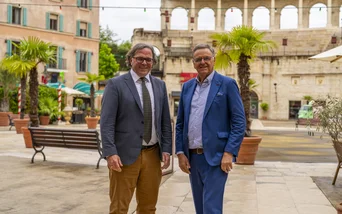 Am 1. April 2024 hat Carsten Gabbert sein neues Amt als Regierungspräsident des Regierungsbezirks Freiburg angetreten. Nun traf sich der gebürtige Lahrer zu einem Austausch mit Europa-Park Inhaber Roland Mack im Hotel „Colosseo“. Im Rahmen seines Besuchs sprach er mit Roland Mack über zentrale Themen des nachhaltigen Tourismus, die Kooperation beim Mobilitätspakt Lahr sowie die Stärkung des öffentlichen Nahverkehrs, für den sich die Inhaberfamilie Mack intensiv einsetzt. „Der Europa-Park ist für die Region über die Grenzen hinaus ein wichtiger Tourismusmagnet", so Carsten Gabbert. Roland Mack freute sich über den ersten Erfahrungsaustausch kurz nach Amtsantritt des Regierungspräsidenten.