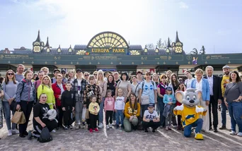 Neue Kraft tanken und einige unbeschwerte Stunden verbringen, konnte eine Gruppe aus der Ukraine in Deutschlands größtem Freizeitpark. Die Frauen, die ihre Männer im Krieg verloren haben, waren gemeinsam mit ihren Kindern auf Einladung von Wolfgang Steimer von der Ukraine-Hilfe eine Woche lang im Schwarzwald unterwegs, um einige Tage vom Alltag abzuschalten. Auch ein Besuch im Europa-Park stand auf der Wunschliste. Jürgen Mack, Inhaber Europa-Park, und seine Ehefrau Mauritia Mack begrüßten die Gruppe, die sich sehr dankbar über die Einladung zeigte. In Deutschlands größtem Freizeitpark erlebten sie einen besonderen Tag und waren sehr beeindruckt von den über 100 Attraktionen und dem vielfältigen Showangebot. Ihr Fazit: "Das war der schönste Tag in unserem Leben." Die ganze Familie Mack engagiert sich in vielfältigen sozialen Projekten und Aktionen für die Ukraine-Hilfe und hat bereits zahlreichen Menschen einen erlebnisreichen Tag in Deutschlands größtem Freizeitpark ermöglicht.