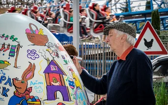 Hunderte Kinder kamen am Osterwochenende in den „blue fire Dome“ im Themenbereich Island zur Malaktion mit Peter Gaymann. Kunstvoll verzierten sie gemeinsam mit dem Cartoonisten ein über zwei Meter hohes Osterei und malten zahlreiche Bilder mit humorvollen Ostermotiven von Peter Gaymann aus. Gaymann, der ursprünglich aus Freiburg stammt und jetzt in der Nähe von München lebt, zählt zu den erfolgreichsten und beliebtesten Cartoonisten Deutschlands.
