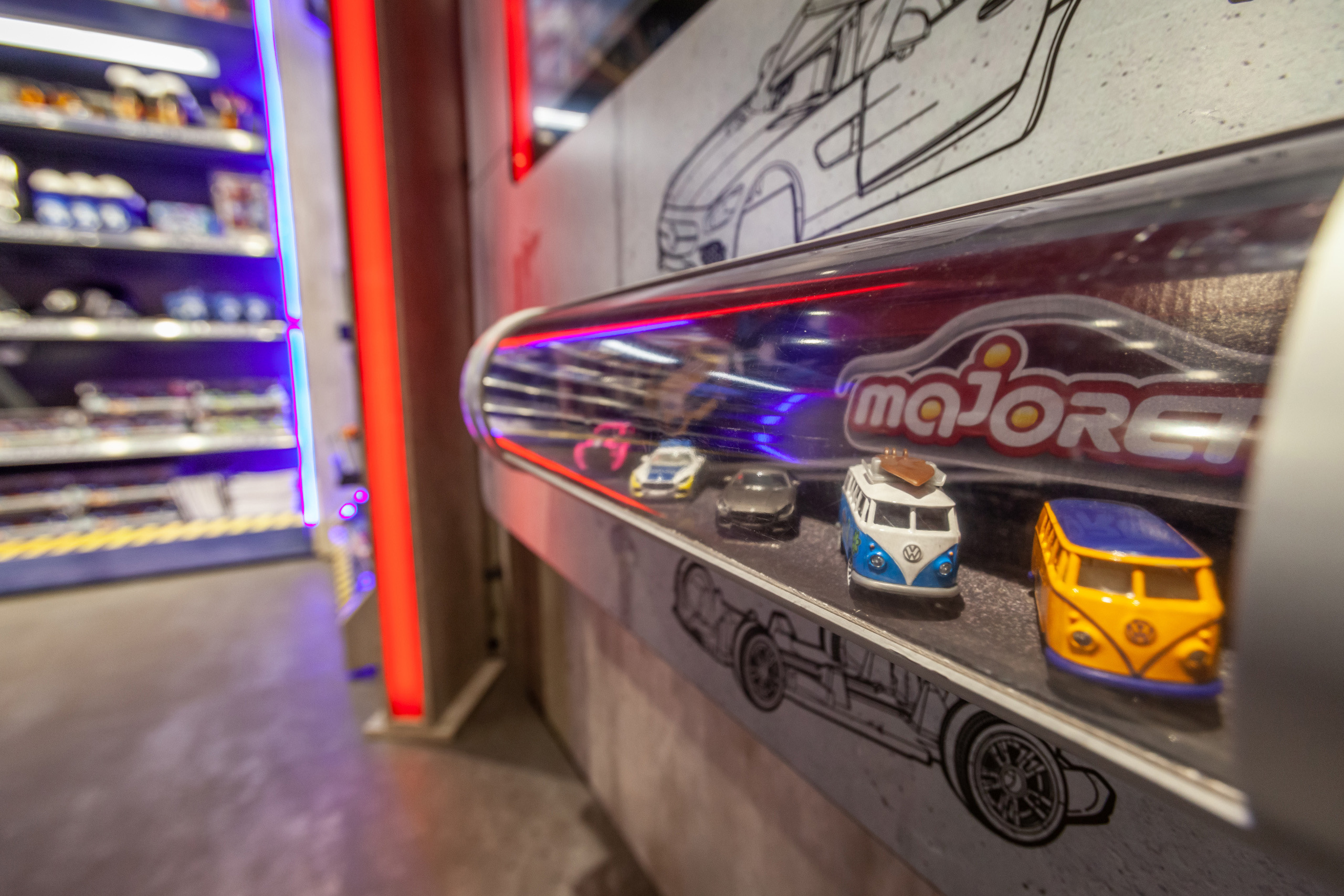 The vision behind Alpha Mods P.D. was to create a futuristic, cross-platform experience. The co-operation with Majorette resulted in the creation of highly detailed collector's toy cars, complemented by virtual reality experiences at Europa-Park and exciting audio stories. Thanks to the elaborate story world and the extraordinary implementation with the Majorette Factory feat. Alpha Mods P.D. and the Coastiality ride at Europa-Park, the brand was honoured with the prestigious IAAPA Brass Ring Award in the 'Best Visual Merchandise' category in 2018.