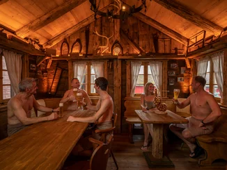 Les adultes peuvent ensuite s’installer confortablement dans l’espace de détente et sauna « Hyggedal ». Cette oasis de bien-être à l’ambiance nordique se trouve au-dessus du restaurant « Lumålunda » et offre une vue de rêve sur l’ensemble de l’univers aquatique. Sur plus de 1 000 m², de confortables chaises longues, trois saunas en bois nudistes et une grande terrasse extérieure attendent les visiteurs (à partir de 18 ans). Depuis l’hiver dernier, les visiteurs peuvent profiter du nouveau sauna-chalet « KOTA ». Des chaises, bancs et tables rustiques ainsi qu’un poêle pour sauna invitent à déguster une délicieuse bière blanche - avec ou sans alcool. « Snorri Snorkling VR » et « Hyggedal » sont des prestations complémentaires qui peuvent être réservées en ligne en plus du billet journée ou soirée pour Rulantica.
