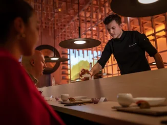 « Eatrenalin » est un voyage culinaire sensoriel qui réunit de manière inédite les forces de l’entreprise familiale Mack. « Un Floating Chair innovant de MACK Rides, des contenus médias virtuels de MACK animation et MackNeXT ainsi que les talents gastronomiques d’une équipe de cuisine composée de grands chefs internationaux : cela n’existe sous cette forme nulle part ailleurs dans le monde », se réjouit Thomas Mack. Le studio de production T-Rex Classics a par ailleurs composé une ambiance musicale dédiée, qui sublime la chorégraphie de ce voyage gastronomique. Le restaurant, d’une superficie totale de 1 600 m², est situé à côté de l’hôtel 4* supérieur « Krønasår ». Au cours de cette expérience d’environ deux heures, les convives sont téléportés dans des univers gustatifs variés grâce à une technologie innovante. « Eatrenalin combine un menu exceptionnel avec des impressions visuelles, des mouvements et des arômes, et emmène les convives dans des lieux spectaculaires, créant ainsi une nouvelle dimension de restauration », ajoute Oliver Altherr, co-fondateur.