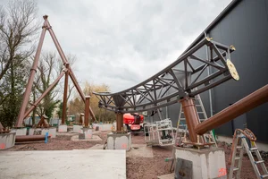 Le gros œuvre de la gare de l’attraction située à côté du quartier grec a été réalisé au cours des derniers mois et les ancrages ont été coulés dans le béton. Sur ces ancrages viennent se fixer les nombreux poteaux du grand huit qui supporteront 1385 mètres de rails. Un élément de rail mesure entre 8 et 12 mètres de long et pèse jusqu'à 3,5 tonnes. La nouvelle installation est fabriquée dans les ateliers de MACK Rides à Waldkirch. Chaque élément est unique et est produit à l'aide de robots et de machines-outils à commande numérique dans le cadre d'une fabrication automatisée à la pièce. Il faut compter quatre jours pour qu'un rail soit monté, peint et prêt à être transporté.