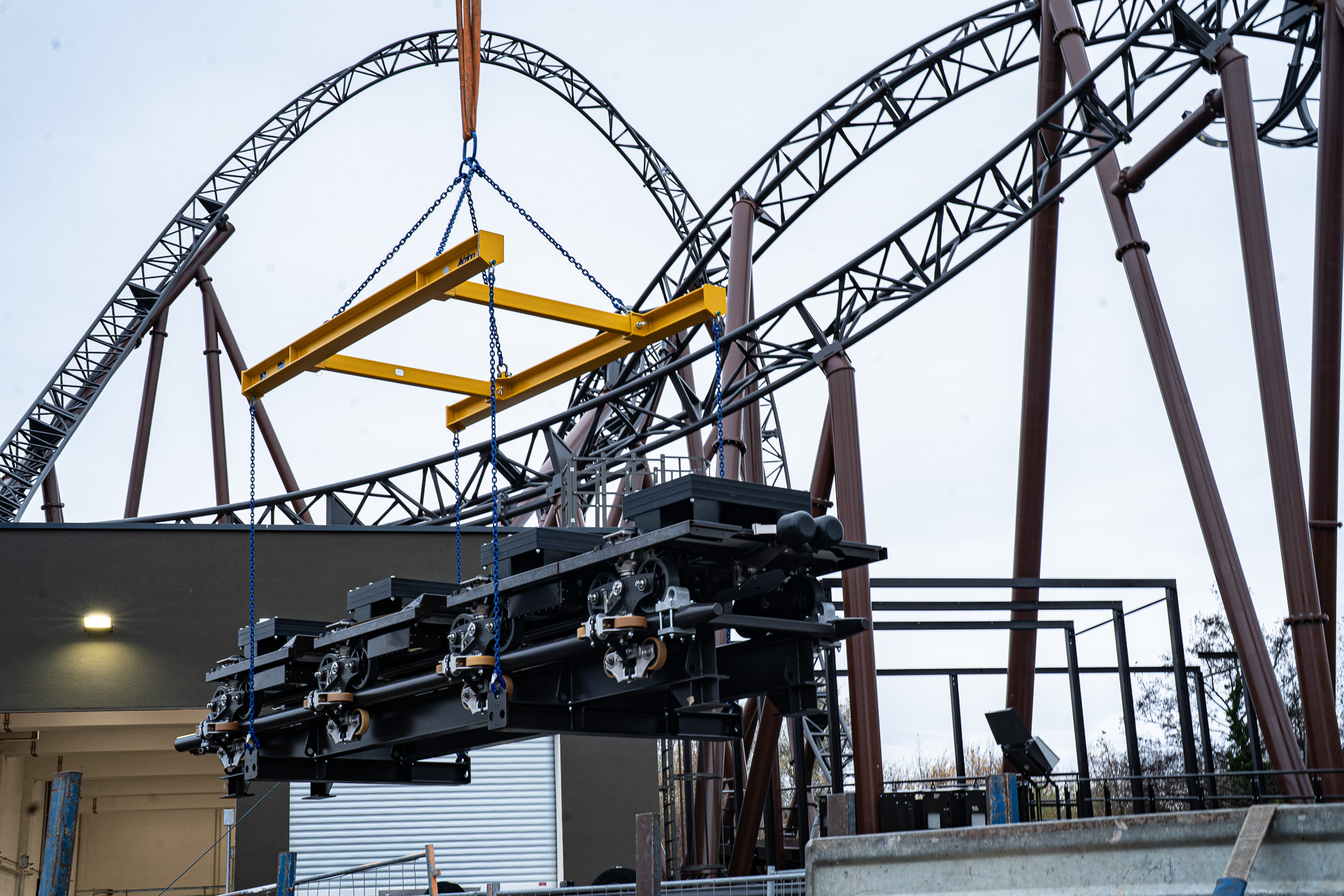 Le montage du nouveau grand huit d’Europa-Park « Voltron Nevera powered by Rimac » bat actuellement son plein. Depuis la pose du premier rail il y a dix mois, une impressionnante structure a vu le jour dans le nouveau quartier thématique croate. Le 27 novembre, le premier des sept trains provenant de la maison mère MACK Rides a été livré. Le train, pesant plus de huit tonnes, et composé d'environ 25 000 pièces, a été assemblé en plus de 150 heures de travail. Dans un premier temps, le véhicule se compose d'un châssis de 6,17 m² muni de poids, avec lequel les ingénieurs effectueront les premiers tours d’essai au cours des prochaines semaines. 72 roues transporteront bientôt 16 passagers à une vitesse de 90 km/h le long du parcours.