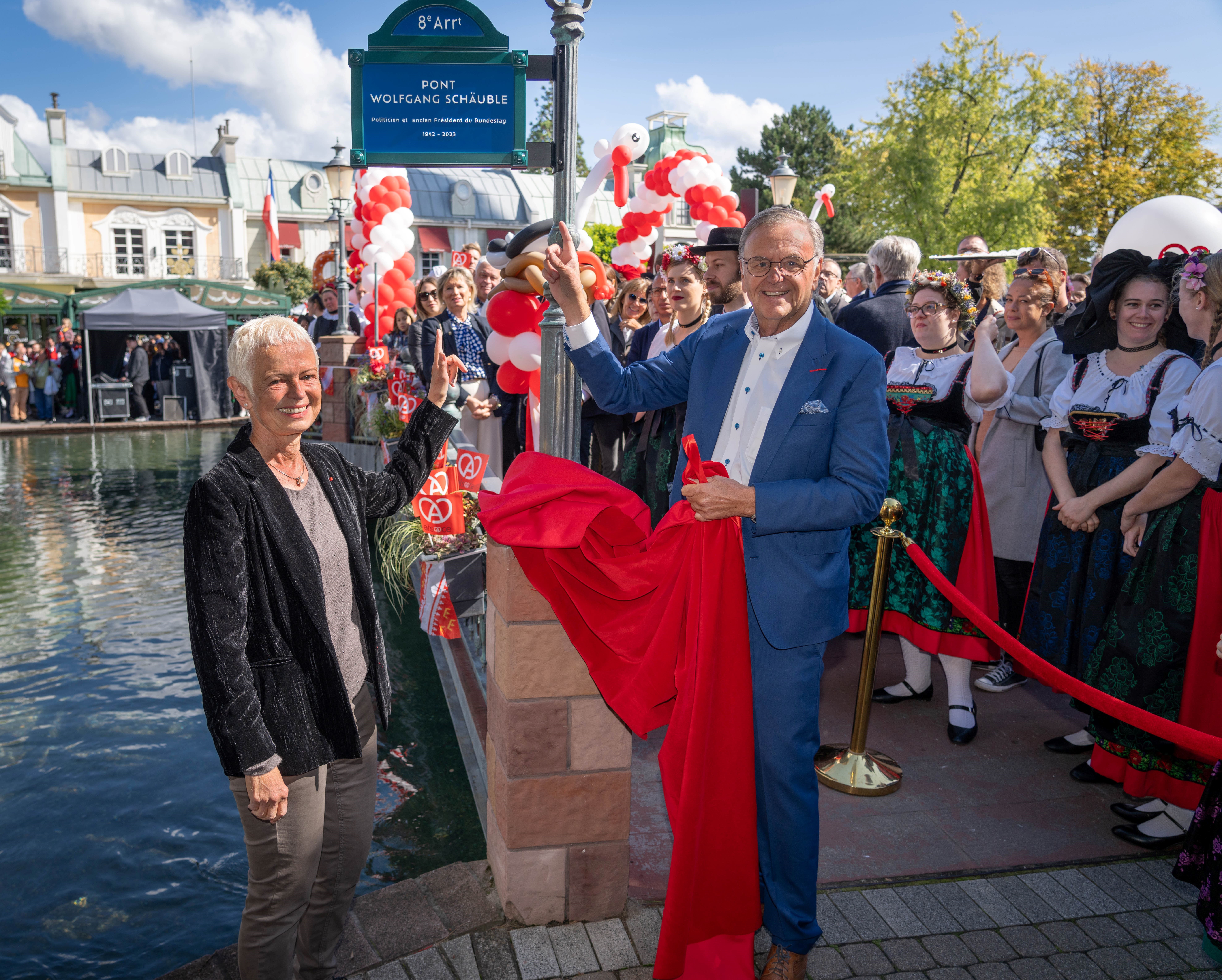 A cette occasion, un pont du quartier français a été baptisé du nom de l’homme d’Etat allemand Wolfgang Schäuble, décédé en décembre 2023. Roland Mack, fondateur d’Europa-Park, a déclaré : « Wolfgang Schäuble a suivi Europa-Park depuis les premiers travaux de construction, c’est-à-dire pendant plus de 50 ans, et a été un pionnier de l’amitié franco-allemande. Il était un ami proche d’Europa-Park et de la famille Mack. Nous tenons à rendre hommage à ce grand bâtisseur de ponts dans le quartier français en baptisant un pont à son nom. Quelle belle symbolique ! Je souhaite que le plus grand nombre possible de jeunes s’approprie et mette en œuvre les aspirations de Wolfgang Schäuble pour la démocratie et l’amitié franco-allemande. C'est pourquoi nous allons lancer en 2025, année anniversaire, un « Forum Wolfgang Schäuble pour la démocratie », qui permettra à de jeunes Français et Allemands de se rencontrer pendant deux jours ici à Europa-Park, d’échanger et de discuter de la nécessité essentielle de la démocratie pour notre société. »