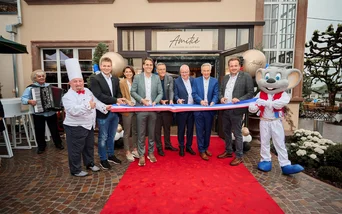 Situé sur la route des vins d’Alsace, le restaurant « Amitié - La Cuisine du Château », a ouvert ses portes le 30 mai à Hartmannswiller, dans un cadre bucolique fait de vignobles et de forêts à proximité du château historique d’Ollwiller. Au travers de ce projet, Thomas Mack, associé-gérant d’Europa-Park et co-propriétaire du domaine viticole, réalise un nouveau rêve. Le restaurant « Amitié » met en avant un concept novateur axé sur des produits du terroir local. Le chef de projet et conseiller gastronomique d’Europa-Park Holger Strütt a élaboré une fine sélection de plats principalement préparés sur un barbecue Charcoa fabriqué en Galice. Une cuisine internationale aux influences françaises est proposée cinq jours par semaine, midi et soir. Un restaurant convivial, propice à la détente, où l’on peut profiter de la force de la nature attend les gourmets.